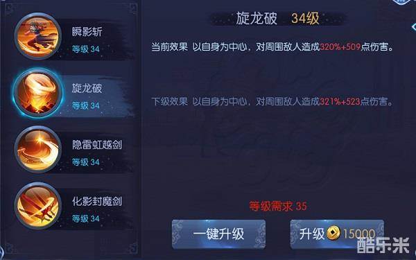 单从技能的名字上来看“瞬影斩”“旋龙波”“隐雷虹越剑”“化影封魔剑”就足以证明吟风这个角色的霸气属性了,并且吟风技能的伤害都是非常之高,而且走的是群攻的套路,因此在群体对战中,吟风是一个十分受欢迎的角色!