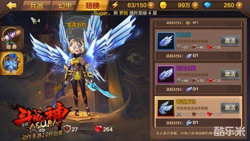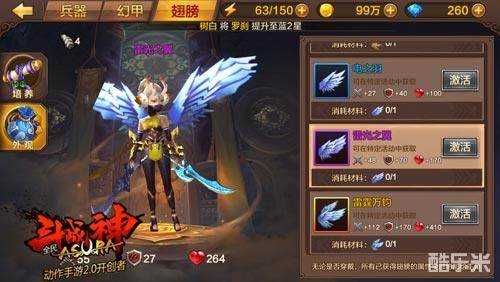 雷属性高级翅膀,雷光之翼能够较大提升我们的防御属性,只有在限定活动中才可以获得。