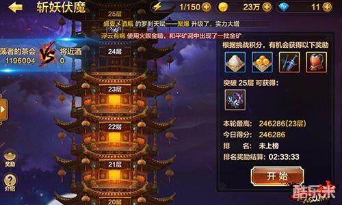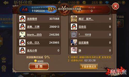 第一斩妖除魔是积分制,每攻击一次怪都是能涨积分的,当积分涨到一个数值就能获得一个宝箱,而后期的时候获得二三十个宝箱都是非常的轻松的,玩家需要的战力当然也不会太低。斩妖除魔会有宗派挑战赛,每个门派会有五名参赛员。两个门派的总计分数更高的获胜,玩家们可以花很少的金币鼓舞,可以得到积分加成。