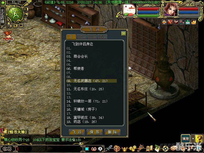 6. 每轮的第10个任务固定要武器或是防具,能提交金色装备最好可以加倍奖励,但太费钱了,可以提交白装,在无名武器店和无名布店分别定2个普通八卦直接飞去就OK。