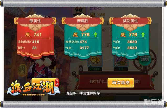 《热血江湖手游》中哪位玩家没有几件心仪的时装,但随着等级和战力提升,只能让昔日的最爱成为仓库中的收藏品。这种不能“从一而终”的遗憾,将在新版中随着精纺玩法的出现成为过去。开启精纺功能的玩家,只需通过消耗相应道具,就可以将你的时装属性进行改变 。如果对精纺后的属性不满意,也可以重复进行精纺,直到玩家满意为止噢。