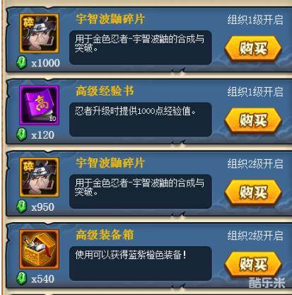 这个地方是商城使用贡献兑换的东西。宇智波鼬的碎片可以从这里获得。一定的碎片合成角色宇智波鼬。