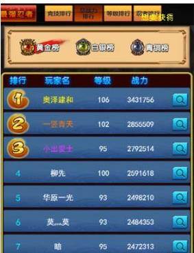 这个就是火影忍者忍者大师H5的排行榜了,第一名是这个奥泽大佬,106级战斗力343W。简直是我不敢想象的。我们点击那个放大镜来看看大佬的阵容搭配吧。