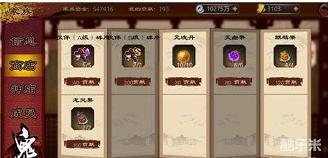 参加各种家族玩法赚取的家族贡献可以用来在家族商店消费,有各种稀有珍贵的材料购买。