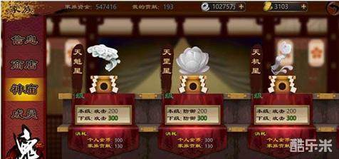 家族资金则可以用来提升家族等级和激活家族神庙的神玉,激活神玉可以为所有家族成员加持属性!