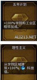 试想一下,假如你选了个全是山的地方建学院,本身相邻加成就高,然后再加上下面两种政策,相邻翻倍,自带建筑翻倍,最后再提高宜居度(这个是百分比加成),科技值是不是瞬间暴涨?