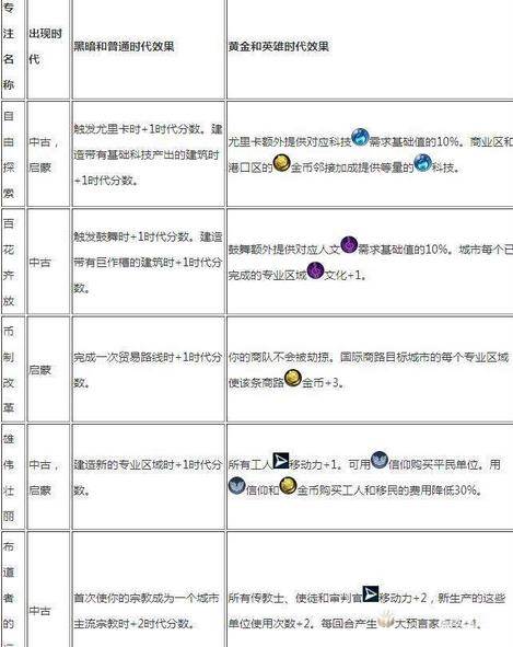 无论玩家进入什么时代,都将被允许选择时代专注(详见时代专注部分)。