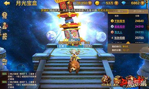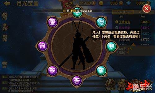 月光宝盒主要是为了获取齐天大圣和月光币的地方,有着很高的挑战难度,挑战者进入月光宝盒的世界,可以在八个关卡中任意选择一个挑战吗,只要挑战过4个关卡,就可以和黑暗悟空一战,战胜后即可获得齐天大圣。