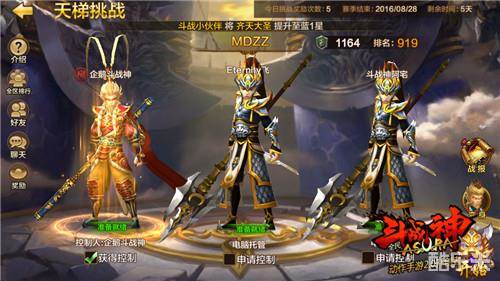 天梯挑战是单个玩家进行的游戏,当然我们可以在开战前选择自己控制的角色。这里推荐大家控制结拜阵营里战力最高的角色,战力越高生存能力越强,扬长避短的道理想必大家都是知道的。