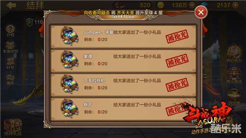结拜三个标准金币、88钻石和888钻石,这些货币都是用来发放礼物的,不仅仅是自己,整个服务器的玩家都能去领取这20份的小礼物,所以发完之后要马上去领取哦。