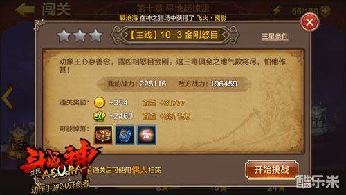 10-3金刚怒目难度还是比较高的,不过大家只要战斗力足够并且了解如何躲避BOSS的技能,三星通关还是很容易的。