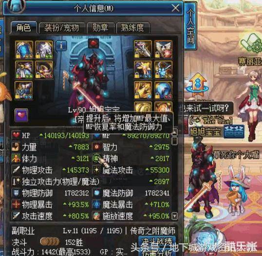 旭旭宝宝的大红神面板国服第一,就算是剑魂都得拜倒在旭旭宝宝红眼的石榴裙下,站街的力量7883,物攻14W5,百分比职业看到恐怕都会羞愧,连固伤职业的物攻都无法媲美。等到旭旭宝宝娜迦王和圣耀短剑升级完成,真的能毁灭阿拉德大陆!