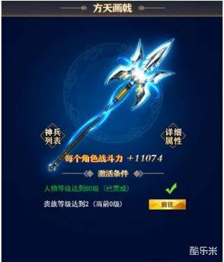 玩家首先要完成神兵系统发布的神兵任务,激活神兵条件才能获得神兵的奖励。一般来说,前几把神兵的激活条件都是很简单的,很容易就能激活。只要玩家战斗力达到要求、等级达到要求,到商店主动买一些装备,参加战场挑战就能激活神兵了。