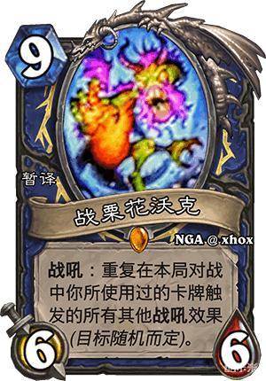 卡牌评价:个人认为该卡还是十分强力的,虽然战吼效果具有随机性,但是还是可以人为控制的,比如说一些只会对自己有用的战吼效果(抽牌)之类的,然后+BUFF类的战吼效果,当只有已方有随从的话也不是问题了。