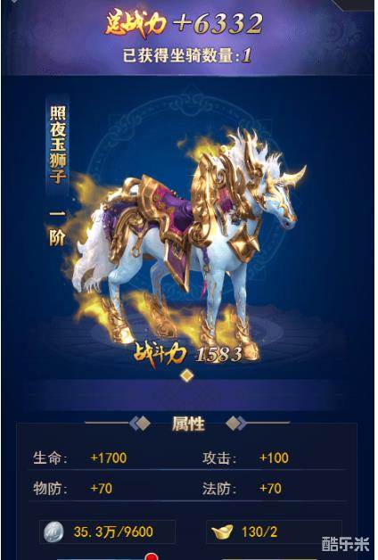 然后就可以强化你的坐骑了银两或者金子都可以,会帮角色提供生命攻击与双防。我只能说聊胜于无。