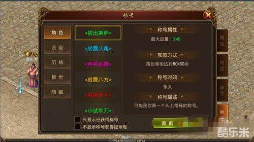 就传奇霸业手游角色称号来说,从小虾米到大侠的所以玛法历程,将全部都有着称号来证明。角色称号包括了初出茅庐、崭头露角、声名远播、威震八方、名扬天下、小试牛刀等等称号,这些称号都是永久时效,一旦拥有便可以终生享有称号所带来的属性加成!