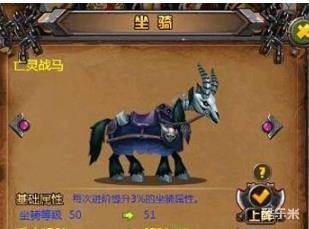 玩家开启坐骑副本之后,都可以获得一匹亡灵战马,他的作用是然对手防御下降并且有一定的几率沉默,玩家获得这只坐骑之后放在一边就好了,不用浪费技能书去升级技能什么的,推荐使用的是神鸦。
