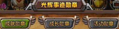 光辉事迹勋章系统包括了三大模块,即成就勋章、成长勋章和活动勋章。目前,只有成就勋章模块是开放的。成就勋章中又包括了众多的小类别,比如登陆、关卡、等级、坐骑等。