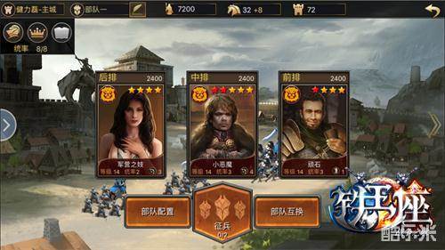 在《铁王座》中,玩家可以根据自己的喜好设计出部队阵容,每个部队有三个阵位,阵位采用单线设计,即前排,中排,后排,根据不同需求安排不同类型的兵种,每个兵种都有不同的攻击距离,如果敌方所在位置大于攻击距离的话,就不会被打中,所以在排阵位的时候,玩家还需多考虑这点情况。值得一提的是,每个阵位还将可以搭配一个英雄,乱军之中取敌人首级只在一瞬间。