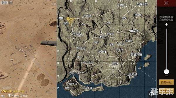 从地图上看,米拉玛沙漠和绝地岛不同,陆地基本占据了整张地图,只有右下侧会有些许的海面。