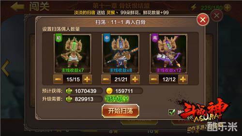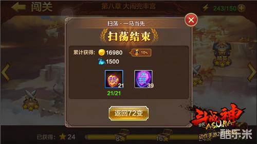 扫荡关卡是获取金币的第三大途径,扫荡更是平民获取金币的最佳途径。扫荡首先可以升级其次可以获取高品质装备,最后还能获取大量金币。每天通过扫荡V5左右的玩家20万金币是妥妥的。