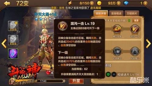 齐天大圣最大的特点就要算是混沌一击这个技能了,使用混沌一击期间是无敌的,不会受到敌方的攻击,这使得我们使用齐天大圣挑战高难度的副本和BOSS时,可以使用这一招去躲避一些高伤害的攻击。