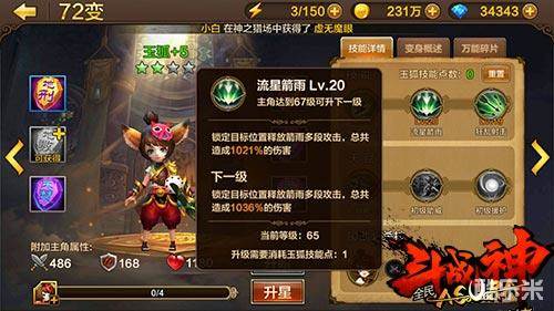 分析:聚魔射击作为正常的浮空技,没有什么亮点,但是流星箭雨不仅攻击高,范围广,长时间的持续输出,可以让精英怪无法释放技能,非常实用。而玉狐的大招狂乱射击,伤害爆表,不管是普通小怪,还是大型BOSS,都是很好的造成输出。