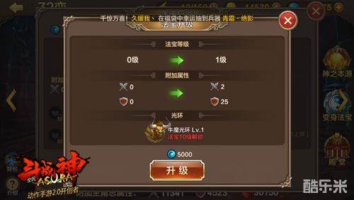 法宝培养中分为法宝升级和法宝升品。法宝升级需要消耗大量的真元,每次升级法宝都可以提升角色各项属性,当法宝到达一定等级时还可以解锁变身光环。法宝升品目前版本中尚未开放,这里就不多说了。
