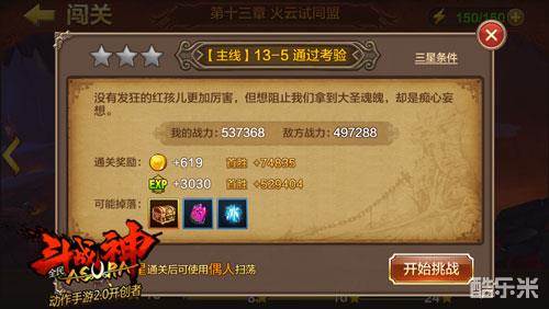 最后编辑于7年前13-5通过考验是一个难度非常高的关卡,本关我们需要面对的是十三章守关BOSS红孩儿,本文就将为大家带来13-5通过考验三星通关攻略。