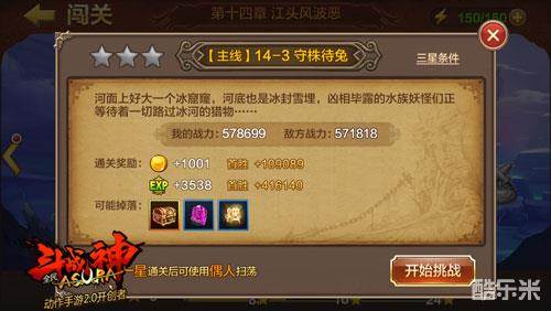 由于没有BOSS的存在,14-3守株待兔的难度并不算很高,只要注意走位不出现一些低级失误,三星通关还是很容易的。