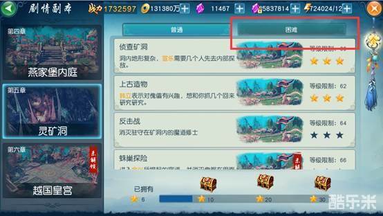 三星通关普通副本之后,可以挑战相对应的困难副本。