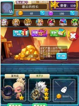 进入游戏,依然是熟悉的主界面,玩家通过消耗金币与钻石可以在商城中召唤各类英雄,当然后者的品质肯定会高一些,休闲玩家可以通过各类任务与活动获得比较不错的钻石奖励;另一方面,多余的英雄可以安排去挖掘金矿,放着就能收获金币啦。