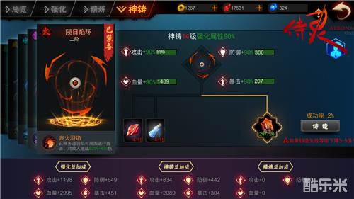 强化与精炼提升的属性低?玩家还可以通过神铸,对武器进行进一步的强化。与强化、精炼增加属性数值不同,神铸武器将会增加攻击、血量、防御、暴击四个属性数值的百分比,让武器属性暴涨!神铸材料可以通过阴阳秘境与神秘商店获得,并且神铸达到一定等级会有几率失败,若神铸失败会下降一定神铸等级,玩家可使用神铸保护符对神铸等级进行保护。