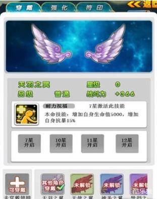 翅膀系统分为三部分,穿戴、强化和符印。穿戴中可以显示目前所有的翅膀的穿戴情况以及技能解锁情况。而强化和符印都是哟买哪个来提升翅膀的战斗欧力的,强化是增加基础的属性值,符印是解锁翅膀的新技能。