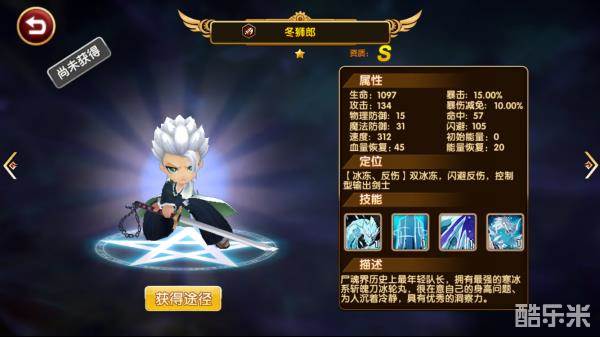 《全明星大乱斗》S级输出之冬狮郎,尸魂界历史上最年轻队长,拥有最强的寒冰系斩魄刀冰轮丸,很在意自己的身高问题、为人沉着冷静,具有优秀的洞察力。