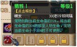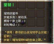 每个宠物创建时都有一定概率获得0-2个常规技能,常规技能可分为主动系、触发系和被动系;玩家可通过“宠物技能格解封符”增加宠物可学常规技能上限,并使用技能书让宠物学会新技能。