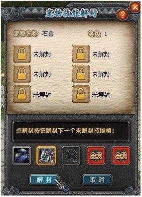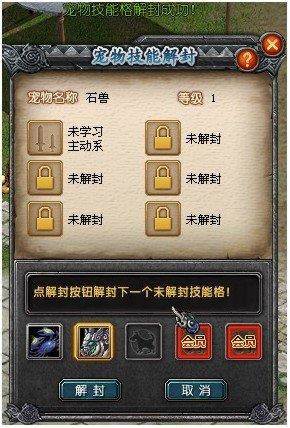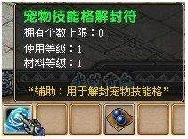 与永乐城 (71,51)的宠物管理员—熊猫男洋洋对话,选择“宠物技能解封”可以将被封印的技能格解封,解封后的技能格可以学习与技能格属性相同的技能。进行“宠物技能解封”需要消耗一个“宠物技能格解封符”。