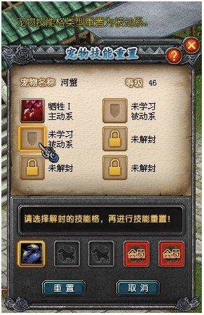 当宠物想要学习的技能类型与宠物技能格类型不匹配时,就需要通过“宠物技能重置”操作,重新生成宠物技能格类型。