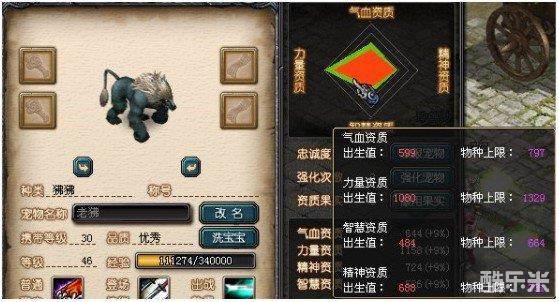 资质的“物种上限”是宠物进行“洗宝宝”操作4项资质所能达到的极限值,若宠物的资质“出生值”等于“物种上限”,则宠物资质达到了该种宠物资质的最大值。