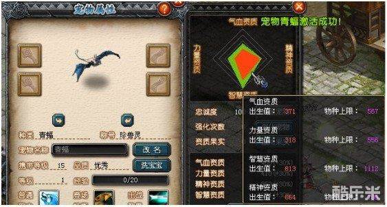 而宠物“青蝠”的气血资质“物种上限”为567。