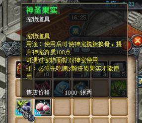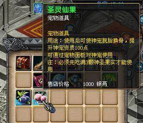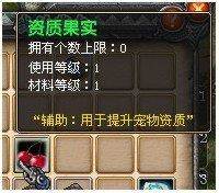 点击宠物界面的图按钮服用资质果实,使用成功后,消耗一个资质果实。