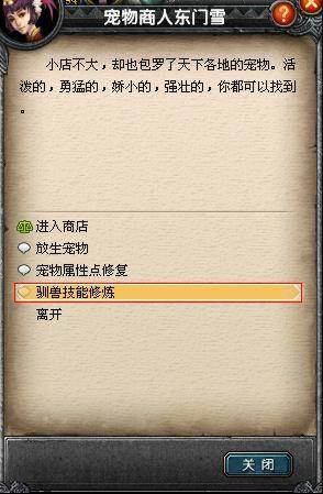 | 尖牙利爪 | 银两、经验、驯兽之证 | 提升出战宠物8点物理攻击。 |