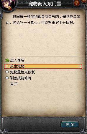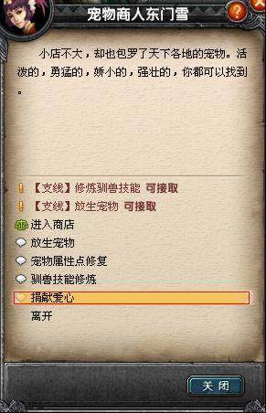 通过在“宠物商人东门雪”处放捐献宠物技能书获得