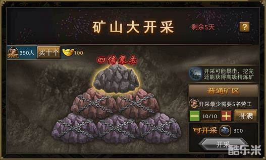 5.随着玩家等级越高或者每次开采使用的劳工数量越多,奖励越多!