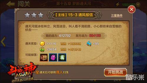 15-3通风报信难度还是比较高的,不过大家只要战斗力足够并且了解如何躲避BOSS的技能,三星通关还是很容易的。