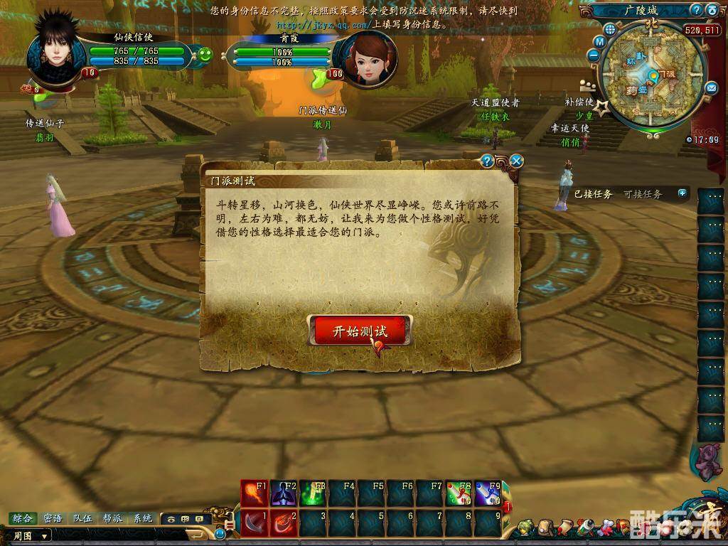 当您的角色等级达到10级时,可以到广陵城的门派接引人青霞(520,511)处完成门派测试,随后了解4大门派的技能演示,了解4大门派的特点。