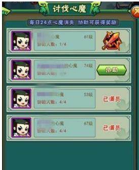 召唤出心魔后,玩阿基不要急着挑战,而是要等着公会的成员协助帮你挑战心魔。玩家最多可以获得4位公会玩家的协助,协助的玩家越多,挑战心魔成功率也高。击败心魔后,玩家和其他协助者都可以获得奖励。