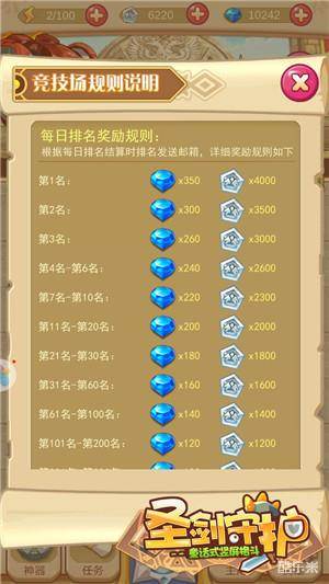 排名靠后的玩家击败靠前的玩家,就可以与其互换位置。《圣剑守护》每日都会结算的竞技场排行榜,排名越高的选手,可以获得越多的的钻石和荣誉徽章。钻石用途多多,游戏中就是真金白银。荣誉徽章则是可以在竞技场商店购买各种道具,其中包含竞技场商店特有的高级装备和稀有英雄之魂,能让弱者变强,强者俞强!
