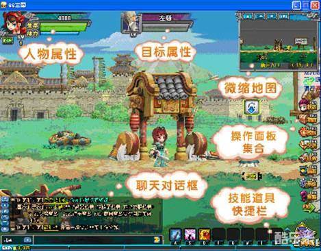 分为上下两部分,系统消息区和玩家聊天区。系统消息区显示的是系统的发布的各种提示信息,玩家聊天区显示的是玩家在游戏中的聊天信息。是玩家交互系统的重要组成部分,使用快捷键ENTER可以激活聊天区的输入框,聊天信息中除了文字外,还可以插入各种可爱的表情哦。输入消息完毕后,按ENTER即可把消息发送给对方。玩家可以在聊天框中选择进入各种不同的频道,实现自由方便的交流。