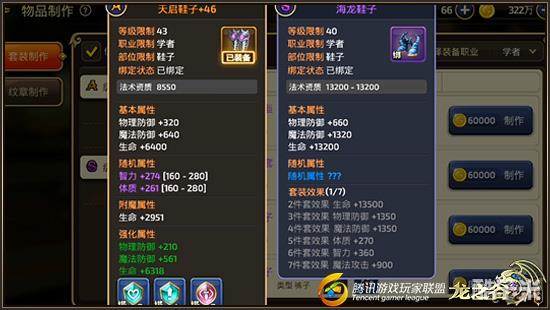 当小伙伴们特别不容易的获取到S级海龙套系列装备之后,战力将会获得大幅度的提升,以海龙鞋子为例,与天启鞋子的初始数据对比,就能够发现在法术资质上整整超过了一倍,